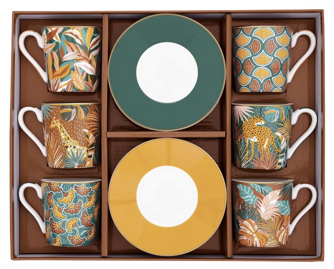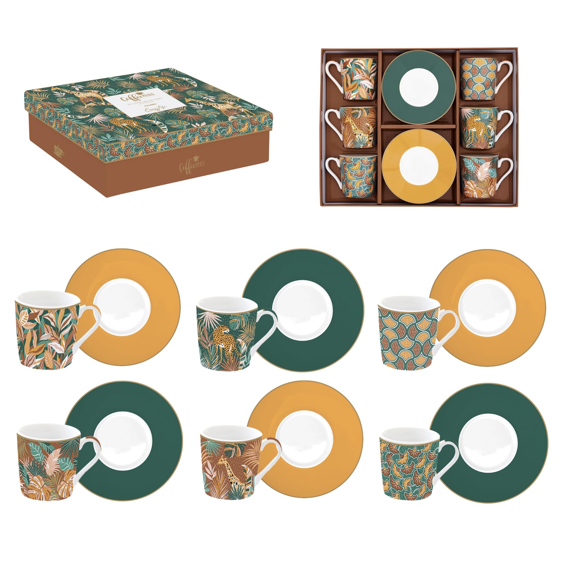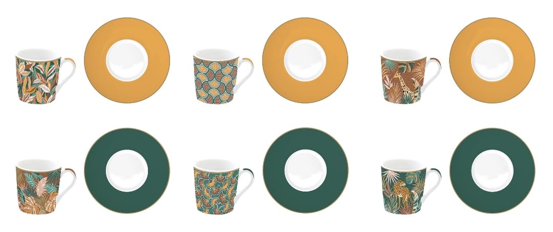 Easy Life Set 6 Tazzine Caffè 100 ml, in porcellana con piattino in Gift Box (GEOMETRICAL LOOP)
